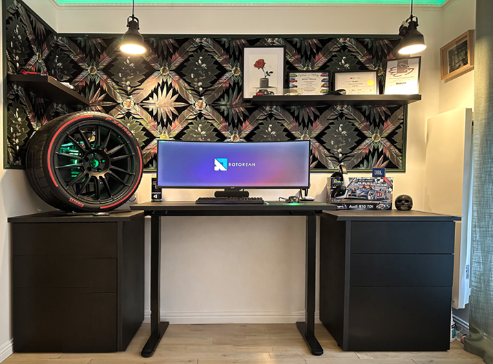 Un espace de travail immersif et affirmé, où matières sombres, éclairages indirects et références automobiles nourrissent la concentration.
